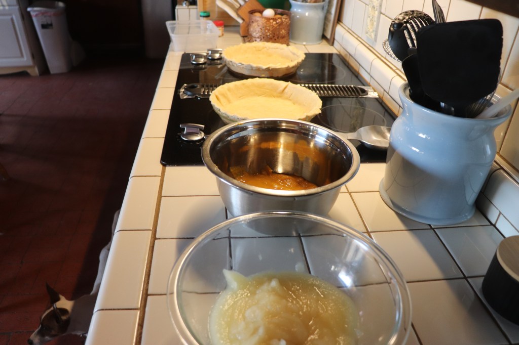 This recipe can be multiplied as many times as you wish. In the following photos, I was baking two pumpkin pies and an apple pie, so I quadrupled it to have a top and bottom crust for the apple pie, and one each for the pumpkin.