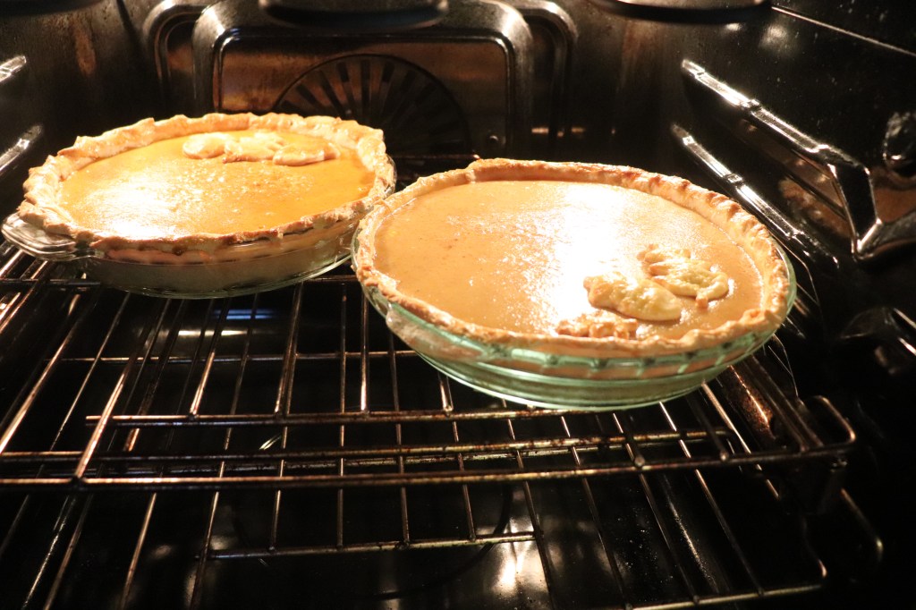 Preheat oven to 425 F. Combine all ingredients well. You can use a mixer but it isn’t really necessary. I opted out of that because I wanted to keep my pie varieties separated for color and flavor. Once the oven is preheated, set your prepared crusts on the oven rack with it pulled out. THEN, pour the filling in the crusts. Pumpkin pie filling is very soupy, so this is the least messy way. Brush your egg wash onto any exposed crust for a nice glossy finish. Bake them for 15 minutes. Reduce the Temperate to 350 F and bake another 45 minutes.